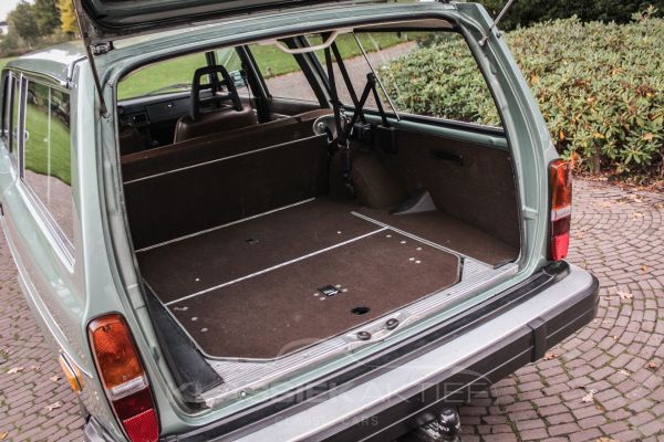 In 2007 is deze schitterende Volvo combi in Nederland geregistreerd en al die jaren met zeer veel zorg en liefde onderhouden. De auto is niet alleen bijzonder vanwege de zeer goede conditie, maar ook vanwege de schitterende en stijlvolle kleur Tahoe Green Metallic. Deze carrosseriekleur vormt een perfecte combinatie met het bruine interieur. En het is niet met zekerheid te zeggen, maar de zeer lage kilometerstand lijkt een originele kilometerstand te zijn. Verder is deze prachtige Volvo 245 niet alleen voorzien van een drie-traps automaat, maar ook nog eens van airconditioning. Al deze dingen maken deze auto extra bijzonder en aantrekkelijk.